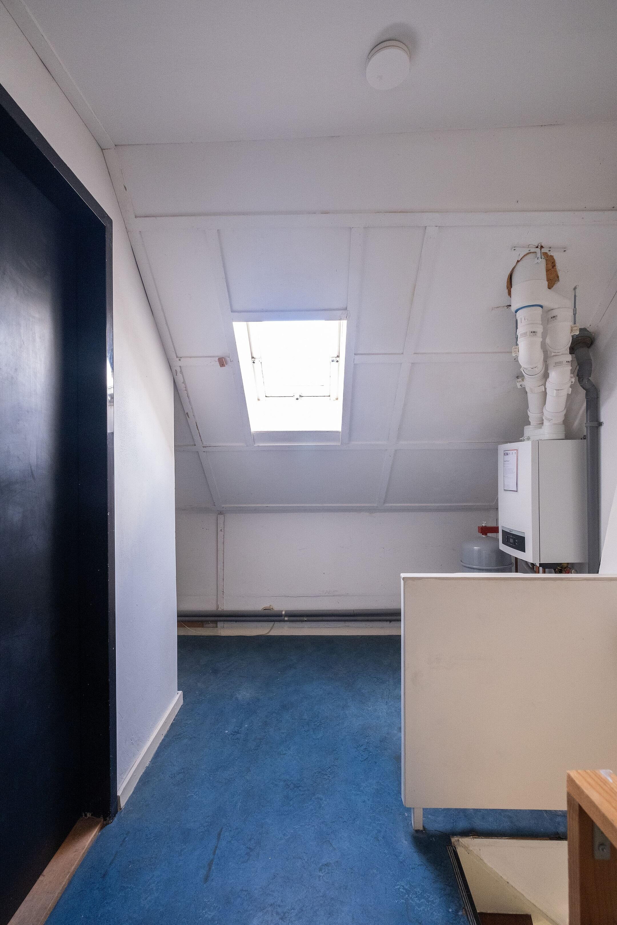 De tweede verdieping biedt nog een extra slaapkamer met dakraam. Hier vind je op de voorzolder de cv-ketel, omvormer en extra bergruimte.